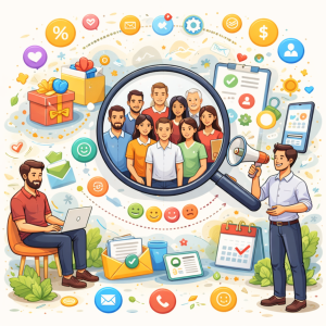 Tunnistamme asiakasryhmät ja tavoiteltavan asiakkaan ominaisuudet eri asiakasryhmistä ja aloilta. Käytössä ovat täydelliset tietokannat mm. Taloustutka, Asiakastieto, Pro Finder joiden määritelyjä (mm. osoite, ala, liikevaihto, työntekijöiden määrä) hyödyntäen saadaan listaus soveltuvista asiakkaista. Listausta verrataan asiakasrekisteriin, jolloin selviää potentiaali kasvulle.